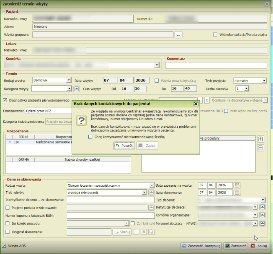 1. Dodano walidację na dane kontaktowe pacjenta.